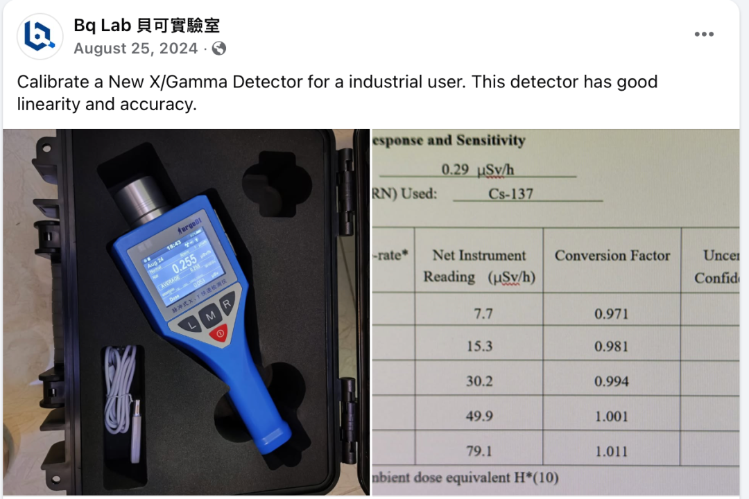 貝可實驗室作為香港專業(yè)的輻射檢測公司,其對外采監(jiān)測設備的精度、穩(wěn)定性及合規(guī)性有著嚴苛標準。由貝可實驗室Facebook官方平臺發(fā)布的歷史消息顯示,貝可實驗室對上海仁機脈沖X、γ脈快速檢測儀進行測試,該探測器的線性度與精確度皆有良好的表現。不僅是對 “中國智造” 在核安全領域技術實力的重要認可,更成為上海仁機全球化布局中的關鍵一步,具體價值與意義可從三方面體現: